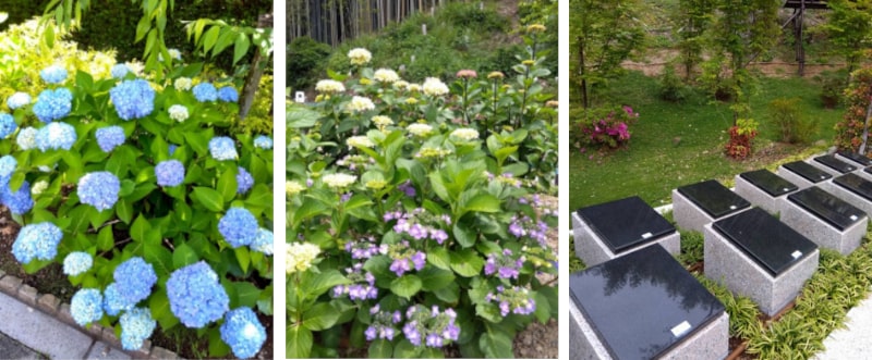 霊園では色とりどりのあじさいが咲き、プランターも夏の暑さに負けない花々に植え替えをいたしました。