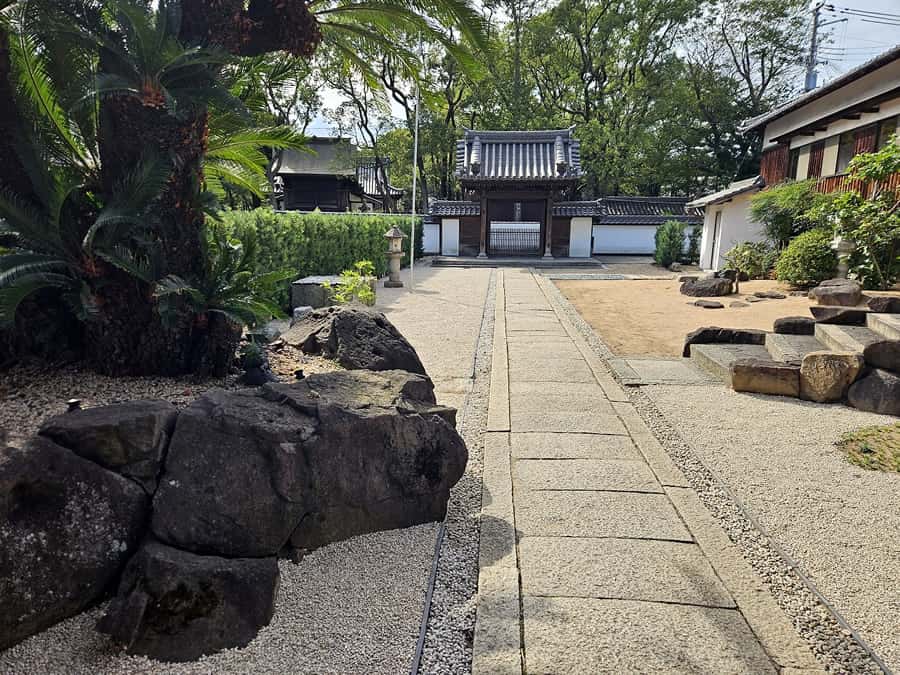 また参道周辺の土敷きだったところに、錆色の伊勢砂利を全面に敷き直しました。ご依頼くださったご住職には、たいへん喜んでいただきました。