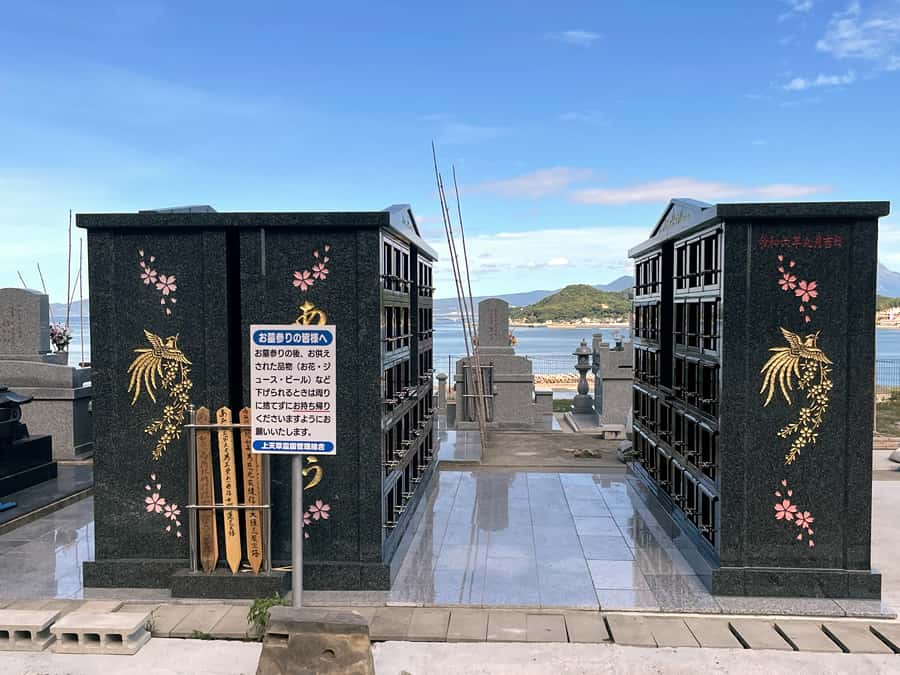 先日、上天草メモリアルパークに、3基目の「納骨壇」が完成いたしました。一つの区画に6寸の骨壺を6個納めることができます。コンパクトな造りで、扉には家名や家紋、お好きな言葉や絵柄をお選びいただいて、彫刻・彩色することができます。終活の一環として生前に購入される方も多く、お陰様でたいへんご好評をいただいております。ご興味がございましたら、お気軽にお問い合わせください。