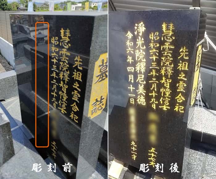 さて、お客様からよくご依頼いただくメニューに、墓碑(法名塔・戒名塔)へのお名前・戒名の追加彫刻があります。併せて、納骨のお手伝いや納骨室内のお掃除などもよくご依頼をいただきます。