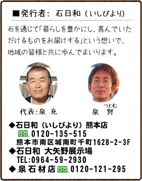 今月号も、最後までご覧いただきまして、誠にありがとうございました。(石日和 泉 充)