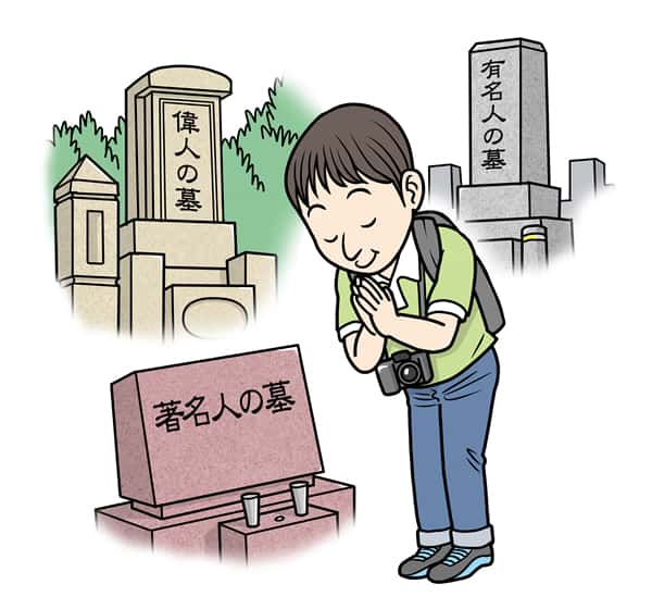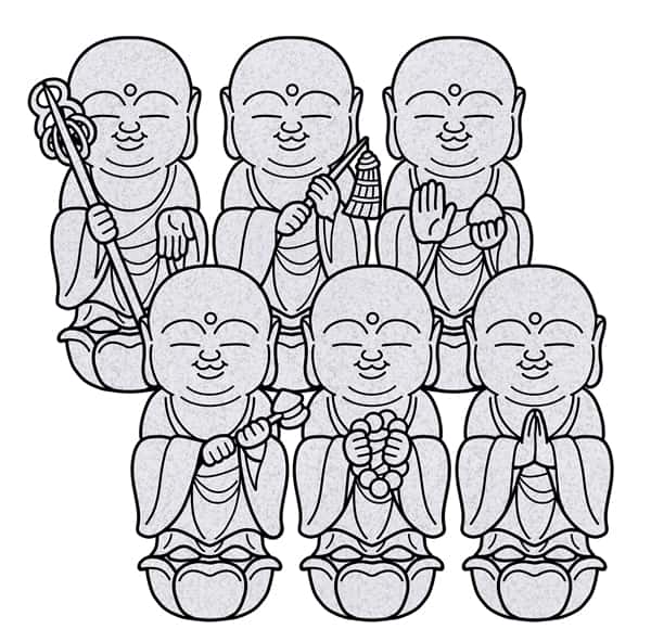 墓地の入り口で、6体並んだお地蔵様「六地蔵」を見かけたことはないでしょうか? 仏教では人は死後、生前の善行や悪行によって地獄道、餓鬼道、畜生道、修羅道、人道、天道の六道(ろくどう)に行き先が分かれるとされています。六地蔵は、地獄道は日光地蔵、餓鬼道は宝珠地蔵というように、六道それぞれにおける苦しみを救う6種類のお地蔵様をいいます。亡くなった方を苦しみから救うとともに、迷わないよう導くため、この世とあの世の境である墓地の入り口に置かれ、人々を見守っているとも言われています。もし見かけた時は、手を合わせてみてはいかがでしょうか?