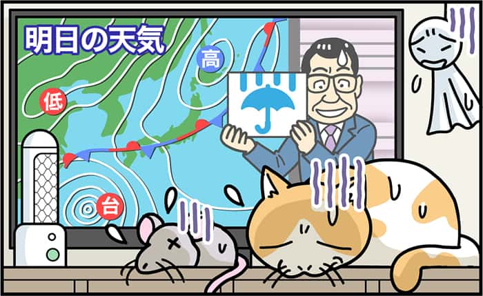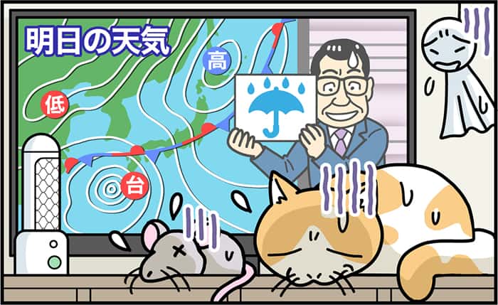 ※まちがいさがしの答え: 1)台風の位置 2)低気圧の等圧線 3)小さい宇宙人の耳
