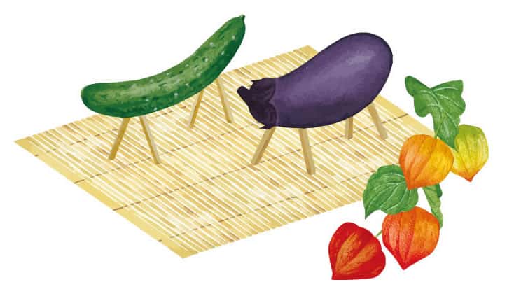 ほおずきは、赤く丸い形が提灯のように見えることから、お盆に帰ってきたご先祖様が迷わずにたどり着けるよう目印として飾るとされています。漢字では「鬼灯」(「鬼」は亡くなった人の意)と書きます。また、帰ってきたご先祖様が、ほおずきの中の膨らんだ空間に一時的に宿り、お盆を過ごされるとも言われています。最近では、お盆に飾ったあとにドライフラワーとして、おしゃれなインテリアとして長く楽しむ「透かしほおずき」も人気です。その赤く膨らんだ姿はどこか神秘的で、昔の人々が亡くなった方への思いを込めた気持ちも感じられます。