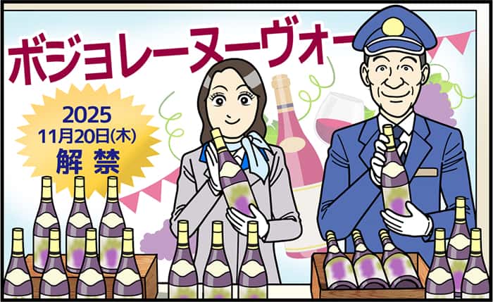 ※まちがいさがしの答え: 1)女性のスカーフ 2)男性が持つ瓶の角度 3)「ジ」の文字