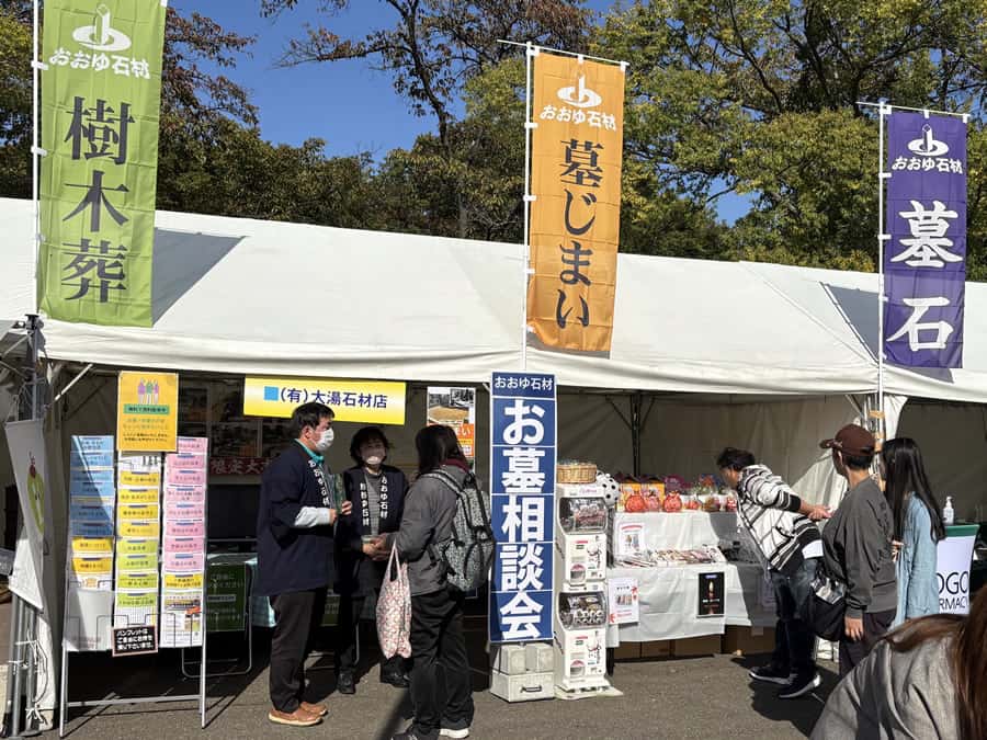 10月17日(金)~19日(日)の3日間、毎年恒例「津軽の食と産業まつり」に出展しました。お墓の無料相談会や天然石ガチャポンなどで賑わい、ブースには120組のお客様にお越しいただきました。当社でお墓を建ててくださった方々から「いつもお墓を見守ってくれてありがとう。これからもよろしく」と温かいお言葉を数多く頂きました。心より御礼申し上げます。