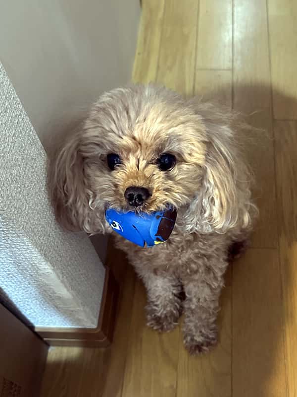 さて、我が家には二匹の愛犬(えいと7歳♂、なな6歳♀)がいます。毎朝私の顔を見ると、遊んでもらいたくて、元気いっぱい尻尾をぶんぶん振りながら向かってきますが、2匹とも遊び方が違います。えいとはボールを投げろといわんばかりに目の前に落とし、投げたボールを拾っては持って来るの繰り返し。ななは「膝に乗せて!」と私の足をかじってくるので、膝に乗せて新聞を読むのが仕事に出かける前のルーティンとなっています。先日、えいとが肉球を痛めてボール遊びができずふてっている様子を見ていると、自分まで悲しい気分に・・・遊んであげていたつもりが、実は私が2匹に元気をチャージしてもらっていることに気づいた次第です。こんな何気ないことも私の活力源になっています。